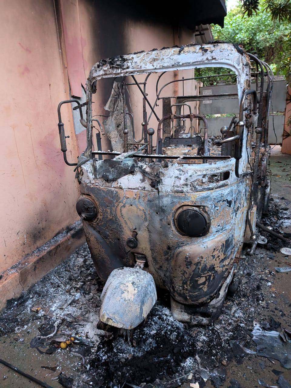 குறித்த சம்பவத்தில் முச்சக்கர வண்டி முற்றாக தீக்கிரையாகியுள்ளது.
